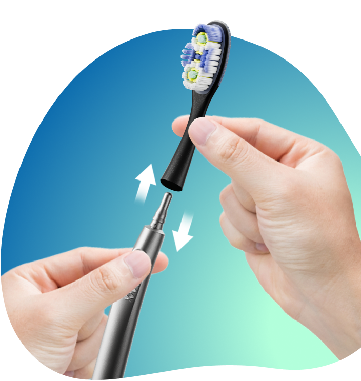 Det exklusiva metallhandtaget kan hålla hela livet, så du behöver bara byta ut borsthuvudena var trejde månad*