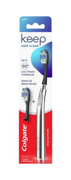 Det hållbara handtaget på Colgate Keep kan hålla hela livet. Med 80 % mindre plast som används behöver du bara byta ut borsthuvudet för att behålla din borste som ny.